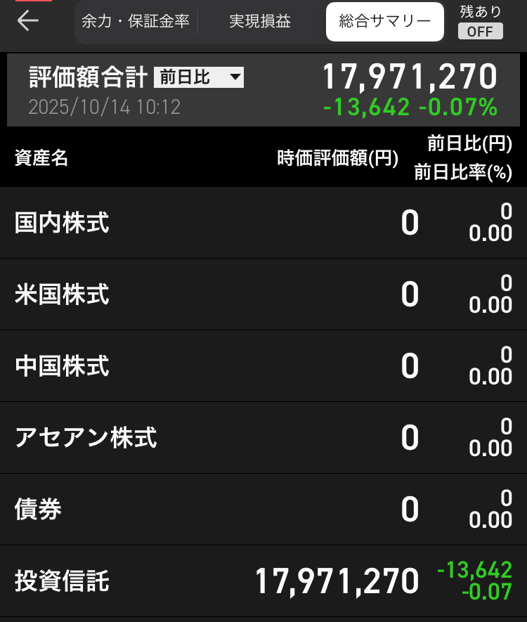 ・楽天証券(つみたてNISA+特定口座):約1,797万円