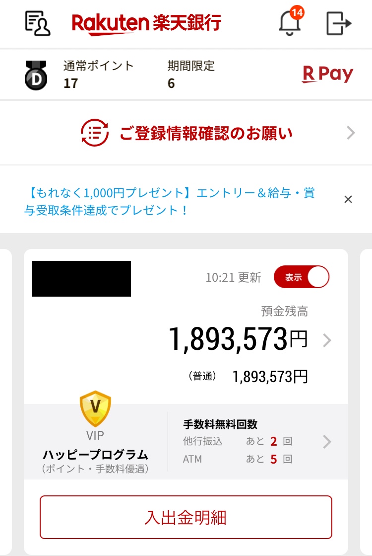 ・楽天銀行(年利0.28%)※300万円を超えた分は年利0.22%